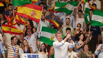 En la capital de la costa del Sol, el líder del PP ha recibido el apoyo del presidente de la Junta, uno de los responsables de la ponencia política. Moreno y Feijóo van de la mano en la pugna por el modelo de primarias, que se hará efectivo para la futura designación del jefe de los populares, en la era PosFeijóo. “No te olvides, cuando seas presidente del Gobierno, de que esta tierra es leal como ninguna a este gran proyecto que es España”, ha pedido Moreno a Feijóo sobre el atril. “Todo llega en la vida, y tal como están las cosas, va a llegar muy pronto”, ha aventurado, al tiempo que denunciaba un supuesto desprecio de Andalucía por parte del Gobierno de Sánchez en favor de los independentistas.