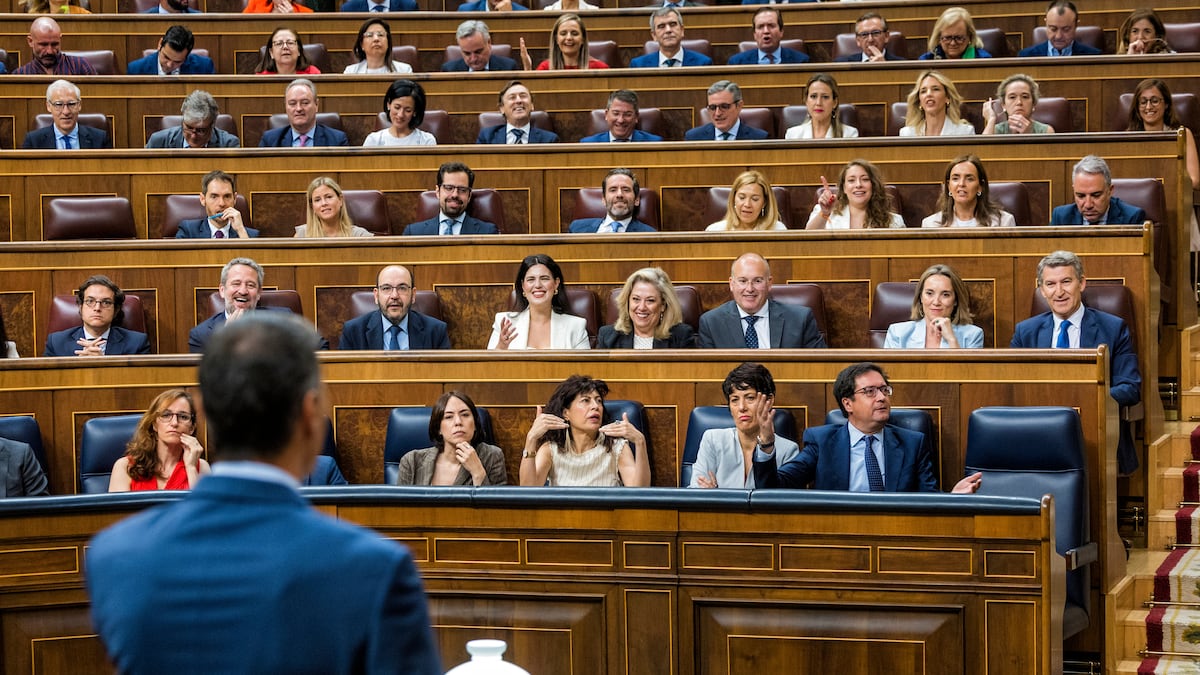 En medio de la barahúnda, la presidenta, Francina Armengol, se desgañitaba: “¡Un poco de respeto!¡Dejen hablar! La democracia es escuchar al otro…” Lo único que conseguía cada reconvención era elevar los decibelios de la protesta. Armengol apeló al propio Feijóo rogándole: “Ponga orden en su grupo”. Allí, el portavoz, Miguel Tellado, lucía en su papel de gran animador de la fiesta. Se llevó una amenaza de expulsión, igual que el diputado de Vox José María Sánchez, después de que un torrente de insultos brotase desde la zona del grupo ultra: “¡Inútil!, ¡sinvergüenza!”.