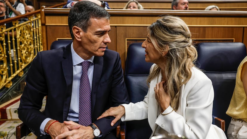 El papel que podría representar la líder de Sumar, Yolanda Díaz, era muy esperado. En el ámbito más íntimo y personal, por la muerte la noche anterior de su padre, un histórico dirigente sindical gallego, por lo que recibió pésames casi unánimes y no pudo aguantar las lágrimas. Pero también por su ubicación física y política. La vicepresidenta segunda del Gobierno no se sentó en la misma bancada que Sánchez y su Gabinete sino que quiso distanciarse y prefirió el escaño reservado a la portavoz de su grupo. Luego mostró con pasión su terrible enfado por una corrupción que etiquetó como “tragedia nacional” pero para marcar al presidente que “gobernar no es resistir”, que hay mucha tarea pendiente y apuntarse el tanto de que 10 de las 15 medidas proclamadas eran de su inspiración. “Usted es honrado, sé que es honrado”, proclamó Díaz sobre Sánchez, pero no le bastó. Le exigió “un giro social para resetear la legislatura” con el empuje a muchas iniciativas bloqueadas, particularmente en materia de vivienda. Esa máxima la reprodujeron más tarde otros socios, como ERC, EH Bildu o BNG.