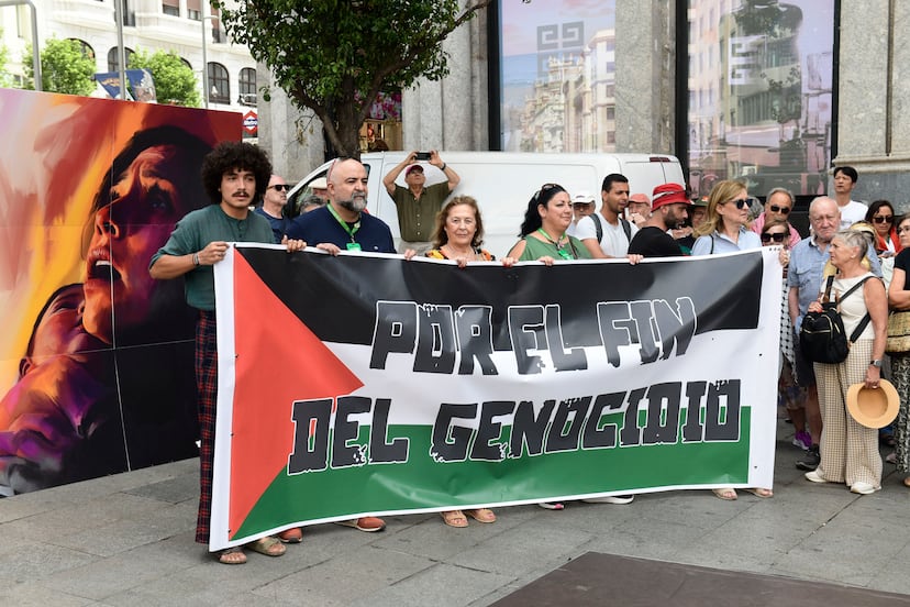 En el manifiesto que había sido publicado dos días antes y que fue leído en tarima por varios de los convocantes, la plataforma sostiene que en Gaza ahora mismo se vive “uno de los momentos más crueles y mortíferos de la matanza que el Gobierno israelí lleva perpetrando en la Franja”. El texto de rechazo a las acciones de Israel y por un alto el fuego definitivo ha conseguido hasta ahora más de 30.000 firmantes en 35 países, en un movimiento que tuvo su origen en el mundo de la cultura y las artes, incluyendo nombres como las actrices Aitana Sánchez Gijón y Alba Flores, los actores Antonio de la Torre y Juan Diego Botto, los cantantes Joan Manuel Serrat y Ana Belén o el cineasta Pedro Almodóvar. “Estamos hoy diciéndole a la gente que en su lugar de veraneo también puede salir, en su pueblo también puede salir; basta con un cartel por el fin del genocidio; no estamos de acuerdo con que la gente se esté acostumbrando”, ha agregado Cunyat desde la plaza de Callao.