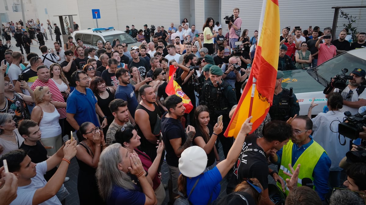 Las estrellas visibles de una concentración desinflada, que una hora después apenas contaba con un grupo reducido de jóvenes que gritaban “Pedro Sánchez, hijo de puta” — y ninguna mención al pueblo marroquí—, fueron los influencers de ultraderecha. Vito Quiles, que había acudido desde la mañana al municipio escoltado por dos hombres fuertes desde Murcia capital; Bertrand Ndongo, que hasta ha dado un mitin ante la falta de pronunciamientos de los manifestantes; y algunos líderes de Frente Obrero. Entre todos protagonizaron un show mediático, con ruedas de prensa improvisadas que pedían un “mayor control de la migración ilegal”. Quiles incluso ha salido a declarar como portavoz del líder de Desokupa justificando su espantada: “Él no se quería ir, quería estar aquí con los manifestantes, pero la Guardia Civil le ha asegurado que podría poner en riesgo a la gente”.