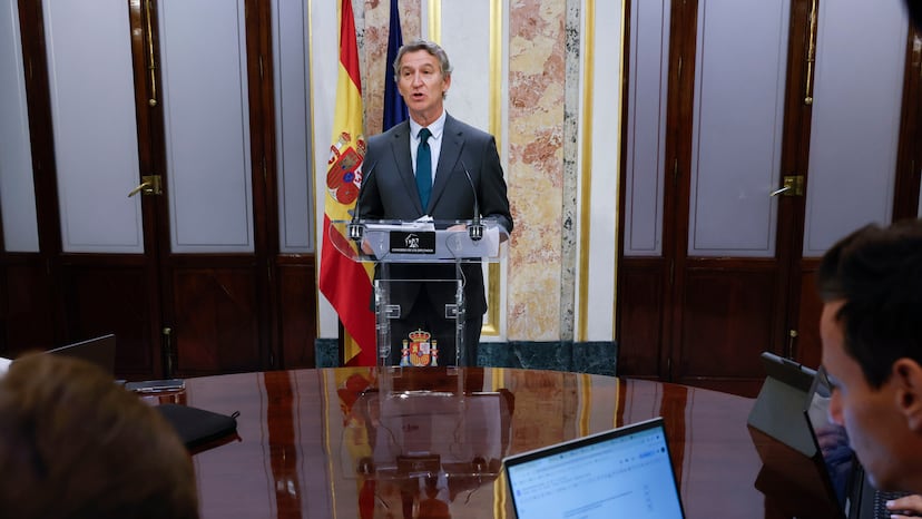 El líder del PP ha querido elevar la presión política en torno al presidente y ha interpelado directamente a los socios del Gobierno para que le dejen caer. “¿Cómo es posible que ninguno de los socios ponga fin a este disparate?“, se ha preguntado. “¿Qué pintan los socios en esta situación? ¿Por qué le sostienen?”, se ha quejado Feijóo, que presiona, pero es consciente de que no está en su mano impedir la continuidad de la legislatura. El jefe de la oposición no ha dicho nada sobre presentar una moción de censura contra Sánchez, la herramienta constitucional que sí está a su alcance, pero que Génova sigue de momento sin ver.