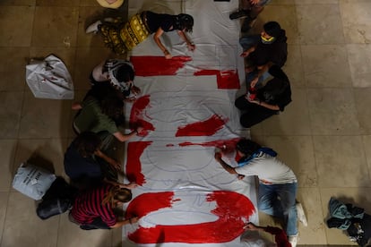 Diego y Lucas, estudiantes de Derecho y Ciencias Políticas, de 17 y 18 años, que prefieren no decir su apellido, se suman a la protesta en la Puerta del Sol: “Necesitamos que el Gobierno rompa todo tipo de relaciones con Israel, que no ponga de excusa al interés nacional, que dejemos de seguir a Estados Unidos y que por una vez paremos este genocidio”, dicen.
