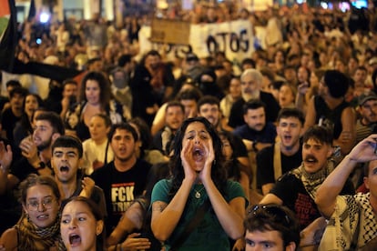 El asalto de Israel a la flotilla que buscaba romper el bloqueo en Gaza ha vuelto a despertar a la sociedad española. Como se vio este jueves y viernes en ciudades como Madrid, Barcelona o Sevilla, la mecha que prendió el mes pasado en las calles durante la vuelta ciclista a España amaga con replicarse este fin de semana en las cerca de 80 protestas convocadas por la Red de Solidaridad contra la Ocupación de Palestina (Rescop) y otros colectivos, según cifra la organización. En un contexto político muy polarizado y coincidiendo con que el martes se cumple el segundo aniversario de los ataques de Hamás a Israel —que desencadenaron una represalia que ha costado la vida ya a más de 66.000 gazatíes—, los partidos a la izquierda del PSOE han llamado a sumarse a las movilizaciones, en un intento por recuperar el espíritu de 2003 contra la invasión de Estados Unidos en Irak. Las ministras de Sanidad y Juventud e Infancia, Mónica García (Más Madrid) y Sira Rego (Izquierda Unida), tienen previsto acudir a la marcha de la capital del sábado a partir de las seis de la tarde, igual que las dirigentes de Podemos Ione Belarra e Irene Montero.