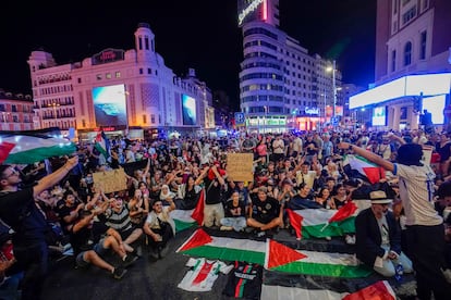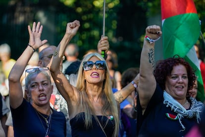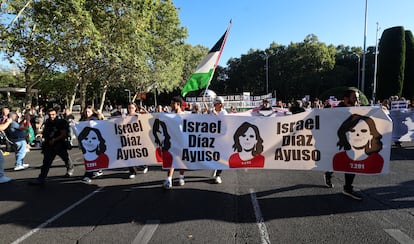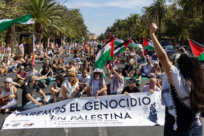 Manifestantes hacen una sentada durante la manifestación en favor de Palestina en la calle Gran Vía de Madrid.Andrea ComasManifestación convocada por la Plataforma Cívica de Vigo Pro Palestina y respaldada por 42 organizaciones y entidades políticas contra el genocidio de Gaza, este sábado, en Vigo. Salvador Sas (EFE)Manifestantes gritan eslóganes contra el genocidio en Gaza, este sábado en Barcelona.Gianluca BattistaUna gran bandera de Palestina es portada por manifestantes en Sevilla.Raúl Caro (EFE)Vista general de la manifestación de Madrid, este sábado, por el Paseo del Prado.Jaime VillanuevaCartel en apoyo a la flotilla global sumud durante la protesta en Barcelona, este sábado.Gianluca BattistaImagen de la manifestación de Madrid a su paso por la Gran Vía.Jaime VillanuevaPancartas contra Ayuso en la manifestación a favor del pueblo palestino en Madrid este sábado. Jaime VillanuevaPintadas en una marquesina a favor de Palestina durante la marcha en Madrid.Andrea ComasImágenes de Ursula von del Leyen, Benjamín Netanyahu y Donald Trump en la marcha de Valencia.Manuel Bruque (EFE)Decenas de miles de personas apoyan la "resistencia" de Palestina y piden la "disolución" de Israel en Pamplona.EUROPA PRESSAsistentes a la protesta en Madrid realizan una sentada en la calle Gran Vía junto a la plaza de Callao.Andrea ComasDos niños sentados en su cochecito con un cartel en catalán que dice: "Netanyahu es tan malo que ni los Reyes Magos le traen carbón", este sábado en Barcelona.Emilio Morenatti (AP)Vista general de la manifestación en apoyo a Palestina y contra el genocidio de Israel, este sábado en Barcelona.Gianluca BattistaVarios manifestantes encienden bengalas durante la marcha en apoyo a Palestina en Madrid.Andrea ComasVista general de la protesta en Valencia bajo el lema "Boicot Israel, Palestina libre!".