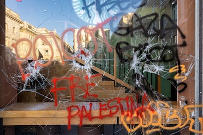 En Barcelona, decenas de miles de manifestantes de todas las edades recorrieron el centro de la ciudad durante casi tres horas. Fueron 70.000, según la Guardia Urbana; 300.000, de acuerdo con las organizaciones convocantes. Fue una manifestación mayoritariamente pacífica, pero que se saldó con un puñado de incidentes de vandalismo contra tiendas señaladas como “colaboradoras” con el Gobierno israelí, como Zara, Banco Santander o Starbucks. En el manifiesto, leído en el Arc de Triomf, las entidades convocantes mostraron su desacuerdo con el plan propuesto por el presidente de EE UU, Donald Trump, y que Hamás ha aceptado parcialmente. “Los Estados cómplices del norte global, entre ellos España, han decidido asumir la legalización de un genocidio”, decía el manifiesto.