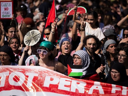 La ciudadanía española parece mucho menos dividida que los partidos políticos respecto a la guerra de Gaza, según la encuesta específica realizada por el instituto 40dB. para EL PAÍS y la Cadena SER. La mayoría de la población (56,7%) la describe como un “genocidio” y menos de un 11% considera que se trata de una “respuesta militar legítima” tras los atentados de Hamás que acabaron con la vida de casi 1.200 personas el 7 de octubre de 2023. También son mayoritarios los partidarios de la solución de los dos Estados (57,5%), del ofrecimiento de ayuda humanitaria (77,2%), del despliegue de tropas de paz (66,7%), de la imposición de sanciones (65,2%) y del embargo de armas a Israel (58,7%). La llamada flotilla de la libertad,y las propuestas para que España no participe en Eurovisión o en competiciones deportivas si también lo hace Israel cuentan con más apoyos —aunque por debajo de las medidas anteriores— que oposición.