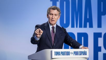 Uno de los momentos que más aplausos del público —cargos del PP— arrancó fue cuando Feijóo dijo: “Medio millón de personas viven en nuestro país sin trabajar, sin cotizar y sin intención de trabajar”. No explicó el líder de los populares cómo hizo ese cálculo o qué estudio llevó a cabo su partido para analizar “intenciones”, pero añadió la propuesta de que las prestaciones sociales, como el ingreso mínimo vital, estén “ligadas a la búsqueda activa de empleo”. “Las prestaciones que son concebidas para quienes más lo necesitan”, afirmó, “no podrán convertirse en una forma de vida para nadie”. El Ingreso Mínimo Vital es, según explica el portal de la Seguridad Social, “una prestación dirigida a prevenir el riesgo de pobreza y exclusión social” de quien carece de “recursos económicos básicos” y “persigue garantizar una mejora real de oportunidades de inclusión social y laboral de las personas beneficiarias”. Como requisitos, además de tener residencia legal en España, el Estado exige “participar en las estrategias de inclusión que promueva el Ministerio de Inclusión, Seguridad social y Migraciones”. Lo que dicen los datos oficiales, por otro lado, es que la comunidad inmigrante aporta mucho más de lo que recibe. Un informe del Banco de España señaló en 2024 que el país necesitaría 24 millones de inmigrantes de aquí a 2053 para mantener la relación entre trabajadores y pensionistas.