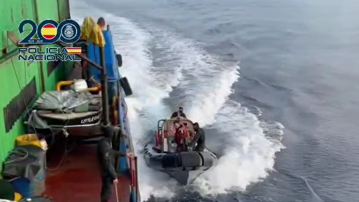 Golpe al narcotráfico en alta mar. Agentes del Grupo Especial de Operaciones (GEO) de la Policía Nacional han abordado en el océano Atlántico a unas 600 millas (965 kilómetros) de las islas Canarias un buque mercante que transportaba aproximadamente 6.500 kilos de cocaína ocultos en sus bodegas, según ha explicado este domingo el cuerpo armado. El barco, de bandera de Tanzania y más de 54 metros de eslora, tenía como destino final el Puerto de Vigo. En la operación fueron detenidos los nueve tripulantes de la embarcación.