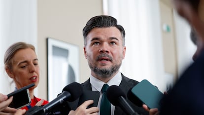 Minutos antes del comienzo de la sesión, el portavoz de Esquerra Republicana, Gabriel Rufián, criticó en los pasillos de la Cámara la decisión de Mazón de acudir al funeral de Estado: “Que vaya es de psicópata. Es de psicópata ir en contra del criterio de todos los familiares”.