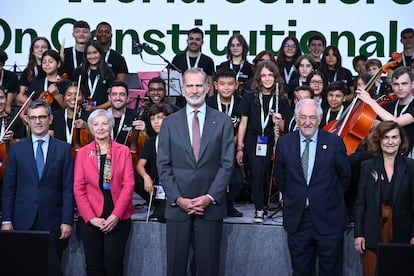 “La justicia constitucional garantiza nuestra libertad: es el último baluarte en la defensa del Estado de derecho”. Con estas palabras el Rey Felipe VI ha clausurado este jueves en Madrid la VI Conferencia Mundial de Justicia Constitucional, que ha reunido a representantes de 85 países durante los últimos tres días. El discurso del Rey conectó directamente con los asuntos en que se ha centrado el congreso: la preservación del medio ambiente, la protección del patrimonio cultural, la garantía de los derechos frente a los retos que se derivan de las nuevas tecnologías, y en especial de la Inteligencia Artificial, y sobre todo, la defensa de la independencia de los propios Tribunales Constitucionales, en su función de garantes de los citados derechos.
