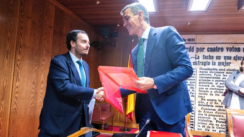 Atrás quedaban cinco horas y media de sesión cuyo primer sobresalto se produjo pasados unos minutos de las nueve de la mañana, cuando el presidente del Gobierno entró en la sala Campoamor del Senado tras ser recibido por el ministro de Justicia, Félix Bolaños, y el secretario de Relaciones con las Cortes, Rafael Simancas, en la puerta principal de la Cámara alta. Una vez sentado en el sillón del compareciente, apercibió a los fotógrafos: “Os voy a sorprender, me voy a poner gafas”. El jefe del Ejecutivo sacó luego del bolsillo su teléfono móvil, lo puso sobre la mesa, y después extrajo unas gafas de ver que usó para tomar notas y escribir. Dejando así la primera imagen peculiar de la jornada.