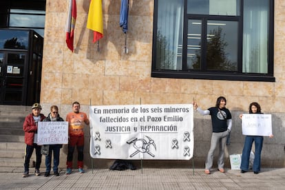 Un policía del juzgado pide a los allegados de Manuel Moure que no apoyen en el muro de la Audiencia Provincial de León un cartel donde exigen justicia para los seis mineros muertos por un escape de gas en 2013. Moure y otros cinco compañeros fallecieron en una explosión mientras trabajaban en el pozo Emilio del Valle, en Pola de Gordón. “Una más”, suspiran. El 28 de octubre se cumplen 12 años del accidente que tuvo lugar en la galería 740 de la mina en la montaña leonesa. El 30 de marzo de 2026 harán tres años desde que la jueza dejó el juicio visto para sentencia, sin que hasta ahora se haya sabido nada al respecto. El 30 de marzo de 2026 harán tres años desde que la jueza dejó el juicio visto para sentencia. Desde entonces, la magistrada ha estado de baja y no ha regresado hasta hace unos días. De momento no ha podido resolver el procedimiento y si lo abandona ahora, este no podría repetirse porque los hechos habría prescrito. Fuentes judiciales tildan la maraña de “endiablada” y “sin solución”. Para la familia, la “tortura” y el descrédito institucional crecen: “Es una chapuza, no creemos en la justicia”. La jueza dispondrá de un “refuerzo”, algo muy ansiado por los agraviados.
