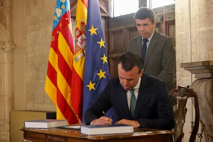 En las últimas semanas, Mompó, de 38 años, ha ganado presencia mediática. El pasado lunes tuvo un desayuno informativo en Valencia donde acudió gran parte de la plana mayor del PP valenciano y también del Consell de Mazón. Mazón, no. Tenía agenda en Alicante, como es habitual los lunes, pero sí estaban presentes sus consejeros más cercanos. En este encuentro con la prensa fue cuestionado por la continuidad del presidente al frente de la Generalitat. “Al final”, dijo, “los valencianos no decidimos cuándo un presidente dimite, sino qué presidente queremos”. E insistió en que Mazón ha ligado su futuro a la reconstrucción. “Él habrá decidido qué hacer en el futuro”.