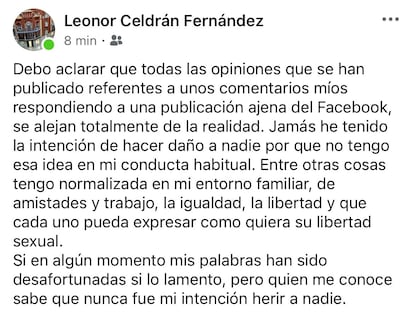 “La única tranquilidad que me queda es que cada vez se reproducirán menos”, escribió, entre otros mensajes, Leonor Celdrán en Facebook, lo que ha provocado una ola de indignación entre la comunidad LGBTI