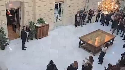 La primera sesión del juicio contra el jefe del ministerio público ha dejado imágenes tan inéditas como lo es todo el proceso, el primero contra un fiscal general del Estado de la democracia. A las 9.42 de la mañana, 18 minutos antes de la hora fijada para el inicio de la vista, García Ortiz se ha bajado de su coche oficial y ha entrado al Tribunal Supremo por la puerta reservada a magistrados y autoridades. Es la primera vez que un acusado accede por esa puerta al alto tribunal para someterse a juicio en un procedimiento penal. Lo insólito de la situación ha alterado incluso el protocolo habitual de los juicios: el acusado ha seguido la vista vistiendo la toga de fiscal general y sentado en los estrados con su defensa, ejercida por la Abogacía del Estado. Al lado de esta, la Fiscalía, que, en contra de lo habitual, no ocupa un sitio del lado de las acusaciones porque reclama la absolución de García Ortiz. El fiscal se ha dirigido al alto tribunal desde la sede de la Fiscalía General del Estado, donde había recibido el aplauso de un grupo numeroso de trabajadores.