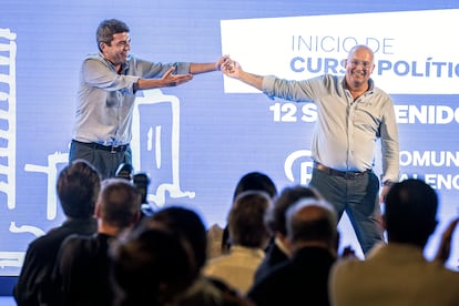 El PP percibió “buen tono” en la conversación entre Feijóo y Abascal de este martes para dar el pistoletazo de salida a la negociación sobre la nueva investidura en la Comunidad Valenciana, lo que le hace “albergar esperanzas” de que sea posible un acuerdo, como dijo este martes el secretario general de los populares, Miguel Tellado. En ese primer contacto, según fuentes populares, Abascal no pidió nada a Feijóo, y tampoco se habló de nombres. Ambos coincidieron, según el PP, en la necesidad de dar “estabilidad” a la región, lo que en principio sugeriría que Vox está por la labor de evitar una nueva convocatoria electoral. Pero todo es incierto.