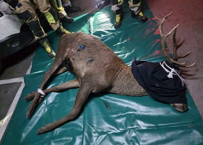 Sobre las 19.30 horas, una vez que el ciervo quedó sedado y le pudieron curar unas heridas que se había hecho, el animal fue trasladado por los bomberos a una zona natural en la que no corra peligro para su puesta en libertad.