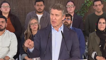 El líder del PP, Alberto Núñez Feijóo, ha acusado este lunes desde Melilla al presidente del Gobierno, Pedro Sánchez, de “romper la independencia judicial” por su defensa de la inocencia del fiscal general del Estado, que afronta un proceso en el Tribunal Supremo, en una entrevista en EL PAÍS. “El fiscal general es inocente, y más aún tras lo visto en el juicio”, dijo Sánchez en la entrevista publicada el domingo. “Están acabados y solo les queda revolverse ante los jueces y torpedear a las comunidades autónomas”, ha añadido sobre el Gobierno Feijóo, que celebra su comité de dirección en Melilla, con el foco puesto en la inmigración. Por otra parte, el secretario general de Vox, Ignacio Garriga, ha afirmado que a su partido “le da igual” el candidato que proponga el PP para sustituir a Carlos Mazón al frente de la Generalitat, que lo que les importa es acabar con las políticas “destructivas” del Gobierno, las relacionadas con el cambio climático que califica de “mortales” o las políticas migratorias. El síndic Juanfran Pérez Llorca, uno de los que suenan como relevo, ha asegurado que nadie le ha comunicado que deba ser el candidato. El nombre del sustituto se deberá registrar en Las Cortes el 19 de noviembre como máximo.