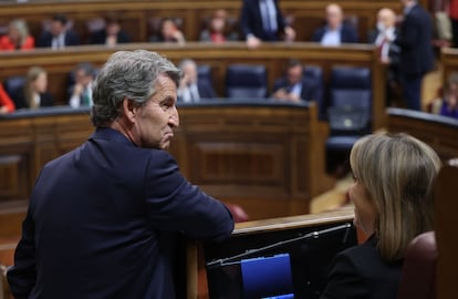 Instalado el debate en esos términos, Feijóo se sintió interpelado por Sánchez como “líder de la oposición al PP” y evidenció el grado de enemistad personal y política al que han llegado los dos dirigentes de los partidos más importantes cuando afirmó para el Diario de Sesiones: “No cuente usted conmigo para nada”. El presidente del PP acusó a Sánchez de degradar poco a poco el horizonte del país hasta ubicarlo en una “crisis moral” histórica y ahí apuntó contra los socios del Ejecutivo para reprocharles muy directamente a PNV y Junts que hayan “normalizado lo inaceptable”. Feijóo retrató luego una España perdida en los peores datos de pobreza, enumeró los casos que afectan ahora al PSOE, pero los aderezó con alusiones al suegro fallecido de Sánchez, su hermano y su esposa y desató un momento de carcajadas en el hemiciclo cuando prometió que cuando gobierne destinará su vicepresidencia primera al área de la vivienda. Algunos diputados socialistas hicieron chanza así con que “Abascal ya tiene cartera”. En el capítulo de anuncios y promesas, Feijóo avanzó otra decisión que tomará si llega a La Moncloa: “Yo no le voy a amnistiar ni a usted ni a los suyos”.