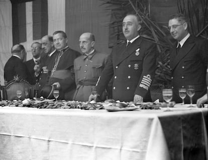A partir de 1945, sin embargo, Franco tiene que cambiar su imagen para su propia supervivencia, y ahí el equipo que le rodea demuestra ser genial. Se cambia a todos los ministros, la Falange, que antes era abiertamente fascista con la FET y de las JONS [Falange Española Tradicionalista y de las Juntas de Ofensiva Nacional Sindicalista], se convierte en el Movimiento, algo burócrata que pasa a chupar del Estado. Se va modificando a los ojos de otros países. Con matices, por supuesto, porque hay conservadores británicos, franceses o americanos que piensan que Franco es una maravilla, pero hay otros elementos, como un Gobierno laborista en el Reino Unido que lo aborrece. Pero que también son pragmáticos.