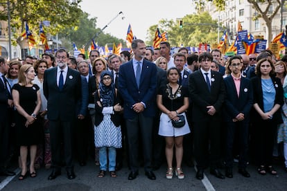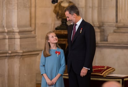 Estado de derecho y el autogobierno de Cataluña, basado en la Constitución y en su Estatuto de Autonomía”.Quique García (EFE)El rey Felipe VI impone el Toisón de Oro a la princesa Leonor, de 12 años, en el Palacio Real el 30 de enero de 2018. Carlos RosilloPedro Sánchez promete ante el rey Felipe VI el cargo de presidente del Gobierno, en un acto en el Palacio de la Zarzuela, el 2 de junio de 2018, con la novedad de que por primera vez en democracia se hace sin la presencia de la Biblia y del crucifijo. Detrás, desde la izquierda, Carlos Lesmes, presidente del Tribunal Supremo; Juan José González Rivas, presidente del Tribunal Constitucional; Pío García-Escudero, presidente del Senado; Ana Pastor, presidenta del Congreso, y el jefe del Ejecutivo saliente Mariano Rajoy.