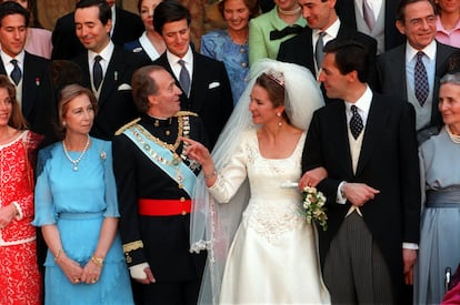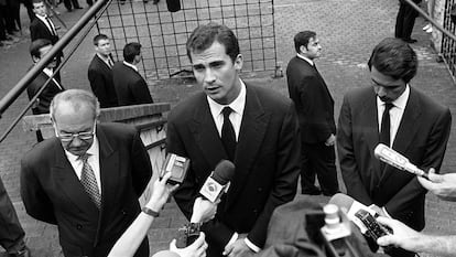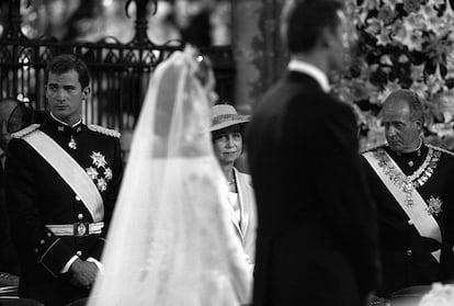 MANUEL H. DE LEÓN (EFE)La Familia Real, en la inauguración oficial de la Exposición Universal de Sevilla, la Expo 92, el 20 de abril de 1992.M. H. DE LEÓN (EFE)El príncipe Felipe, abanderado de la selección española en los Juegos Olímpicos de Barcelona, el 25 de julio de 1992, en una imagen de TVE.TVELos Reyes lloran durante el acto de entrega de los restos mortales de Juan de Borbón al prior del monasterio de El Escorial (Madrid), el 3 de abril de 1993. Enterrado con honores de rey, en 1990 se le había diagnosticado un cáncer de laringe, del que murió con 79 años.EFEEl rey Juan Carlos, con Isaac Rabin, primer ministro de Israel, y Yaser Arafat, presidente de la Autoridad Palestina, en un almuerzo en el palacio de la Zarzuela, el 24 de noviembre de 1994. Esa misa tarde recogerían el Premio Príncipe de Asturias a la Cooperación Internacional y dos semanas después el Nobel de la Paz. Isaac Rabin moriría asesinado en noviembre de 1995 en un acto a favor de la paz.Ricardo Gutierrez Foto de familia en los Reales Alcázares de Sevilla, de la boda de la infanta Elena con Juan de Marichalar, el 18 de marzo de 1995.Cristóbal ManuelEl príncipe Felipe, flanqueado por el 'lehendakari' José Antonio Ardanza, a la izquierda, y el presidente del Gobierno, José María Aznar, habla con la prensa tras el entierro de Miguel Ángel Blanco, en Ermua (Bizkaia), el 14 de julio de 1997. El concejal del PP, de 29 años, fue secuestrado y asesinado por los terroristas de ETA. Tres días que convulsionaron España y sacaron a cientos de miles de ciudadanos a la calle para pedir el fin del terrorismo.Santos CiriloBoda de la Infanta Cristina con Iñaki Urdangarin, en la catedral de Barcelona, el 7 de octubre de 1997. En la imagen, los Reyes y el príncipe Felipe, con los novios en primer plano.Marisa FlórezEl rey Juan Carlos visita al rey Fahd de Arabia Saudí en su palacio de Marbella (Málaga), el Nahda, el 27 de agosto de 2002. Juan Carlos I se encontraba de vacaciones en Marivent y voló en helicóptero hasta Marbella para encontrarse con Fahd, de 80 años, y con un delicado estado de salud, en una “visita privada, de cortesía, a un jefe de Estado que se encuentra en el territorio nacional” según fuentes del palacio de la Zarzuela.EFEPetición de mano, en el palacio del Pardo, en Madrid, el 6 de noviembre de 2003. Desde la izquierda, los padres de la novia, Jesús Ortiz y Paloma Rocasolano; la reina Sofía, el príncipe Felipe, la novia, Letizia Ortiz, y el rey Juan Carlos. Gorka LejarcegiDe izquierda a derecha, José Manuel Durão Barroso, primer ministro portugués, Ángel Acebes, ministro del Interior; José Luis Rodríguez Zapatero, Jean Pierre Raffarin, primer ministro francés; Silvio Berlusconi, José María Aznar, el príncipe Felipe y la infanta Elena, durante la gran manifestación del 12 de marzo de 2004 de los atentados terroristas del 11-M que ese día dejaron 192 muertos y más de 2.000 heridos.LUIS MAGÁNEl rey Juan Carlos, entre el nuevo presidente del Gobierno, José Luis Rodríguez Zapatero, y su predecesor, José María Aznar, el 14 de abril de 2004, en el palacio de la Zarzuela.Uly MartínCompañeros de promoción del príncipe de Asturias en las academias militares hacen un pasillo de sables a los novios, a su salida de la catedral de la Almudena el día de su boda, el 22 de mayo de 2004. Uly MartínLos Príncipes de Asturias posan con los miembros de las casas reales y otros invitados, en el palacio Real de Madrid, el día de su boda, el 22 de mayo de 2004.