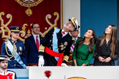 Albert GarciaLos retratos realizados por la fotógrafa Annie Leibovitz a Felipe VI y la reina Letizia, en la exposición 'La tiranía de Cronos' del Banco de España, el 25 de noviembre de 2024.Moeh AtitarDesde la izquierda, la princesa Leonor, el rey Felipe VI, la reina Letizia y la infanta Sofía miran al paracaidista que desciende con la bandera nacional, en el desfile militar por el 12 de octubre de este año, Día de la Hispanidad, en Madrid. Detrás, Camilo Villarino, jefe de la Casa del Rey.Claudio ÁlvarezEl rey Felipe VI interviene en la 80ª Asamblea General de la ONU en Nueva York, el 24 de septiembre de 2025.Jeenah Moon (REUTERS)