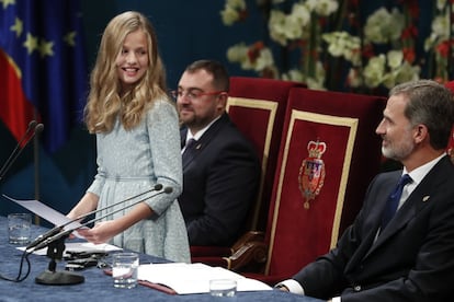 Fernando Alvarado (EFE)Desde la izquierda, los expresidentes del Gobierno Mariano Rajoy, José Luis Rodríguez Zapatero, José María Aznar y Felipe González aplauden a los reyes Juan Carlos y Sofía en la conmemoración del 40º aniversario de la Constitución en el Congreso de los Diputados, el 6 de diciembre de 2018.Alvaro GarcíaLa princesa de Asturias, Leonor de Borbón, con 13 años, mira a su padre, el rey Felipe, el 18 de octubre de 2019, tras su primer discurso oficial en la ceremonia de entrega de los Premios Princesa de Asturias en el teatro Campoamor de Oviedo, el mismo acto y lugar en el que su padre el rey Felipe VI lo hiciera en 1981. Detrás, el presidente de Asturias, Adrián Barbón.