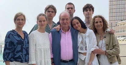 Emilio Naranjo (EFE)El rey emérito Juan Carlos, con sus hijas Elena y Cristina y varios de sus nietos, Juan, Miguel, Irene y Pablo Urdangarin y Victoria Federica Marichalar, en Abu Dabi en abril de 2022. Salió de España en agosto de 2020 “ante la repercusión pública que están generando ciertos acontecimientos pasados de mi vida privada”. Quince días después, la Casa Real anunciaba que se había instalado en la capital de Abu Dabi.EUROPA PRESSEl rey Felipe VI pasa ante la princesa de Asturias durante la revista a los cadetes de primer curso en la Academia General Militar de Zaragoza, en el acto de jura de bandera de Leonor de Borbón, el 7 de octubre de 2023.Samuel Sanchez La princesa Leonor jura la Constitución ante la presidenta del Congreso, Francina Armengol, y los reyes Felipe VI y Letizia, en el día de su 18 cumpleaños, el 31 de octubre de 2023.Claudio ÁlvarezLa princesa de Asturias y el presidente la República Portuguesa, Marcelo Rebelo de Sousa, durante su visita al Oceanário de Lisboa el 12 de julio de 2024, en el marco de su primer viaje oficial al extranjero.