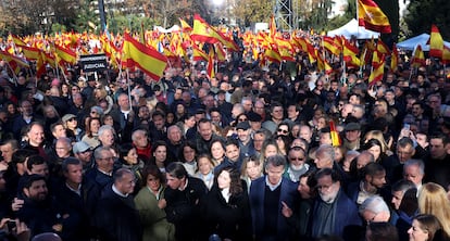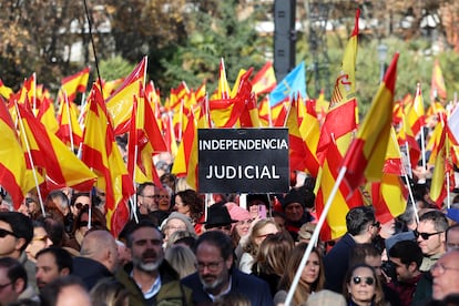 Jaime VillanuevaUn manifestante porta un cartel con el lema "Independencia judicial" en la concentración de este domingo en el Templo de Debod de Madrid.Jaime VillanuevaEl expresidente del Gobierno Mariano Rajoy, este domingo, en el Templo de Debod de Madrid.Jaime VillanuevaEl exportavoz parlamentario de Vox en el Congreso Iván Espinosa de los Monteros asiste a la protesta convocada por el Partido Popular, este domingo, en el Templo de Debod.EUROPA PRESS (EUROPA PRESS)Dirigentes del Partido Popular asisten a la protesta en el Templo de Debod contra el Ejecutivo.Jaime VillanuevaEl presidente de la Generalitat Valenciana, Juan Francisco Pérez Llorca (en el centro), posa con manifestantes a su llegada a la concentración, este domingo en el Templo de Debod de Madrid.Juanjo Martín (EFE)El fundador de VOX Alejo Vidal-Quadras, a su llegada a la protesta.Juanjo Martín (EFE)El escritor Andrés Trapilleo, entre el público, asiste en la concentración del Partido Popular, este domingo.Jaime VillanuevaLa diputada del PP Cayetana Álvarez de Toledo llega al Templo de Debod para participar en la concentración.Juanjo Martín (EFE)María del Mar Blanco, senador del PP, llega para participar en la concentración convocada por el partido en Madrid.Juanjo Martín (EFE)El filósofo Fernando Savater (en primer término), a su llegada a la protesta en el Templo de Debod.Juanjo Martín (EFE)