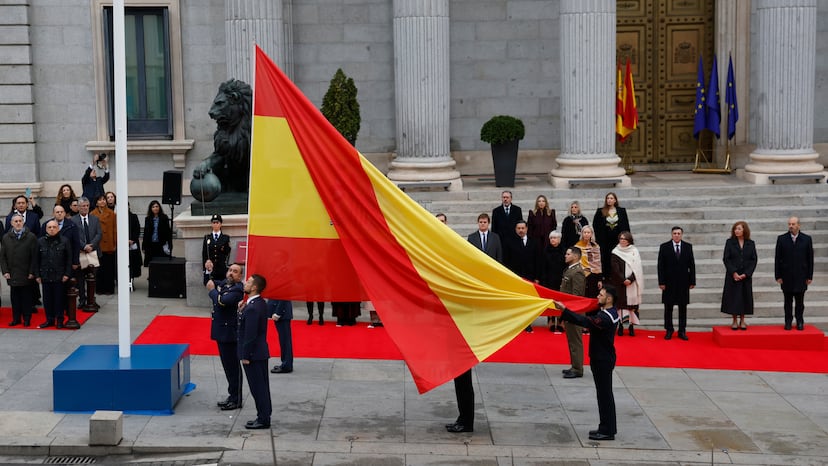 La tradicional celebración del 6 de diciembre reunió como siempre a las principales autoridades del Estado, salvo el Rey, y a más representación política de la izquierda que de la derecha. Vox se da golpes de pecho alardeando de fe constitucionalista, mientras boicotea este tipo de actos institucionales, al igual que las formaciones soberanistas, esos a los que el partido de Santiago Abascal tacha de “enemigos de España”. Así que el flanco derecho de la Cámara compareció solo a través del PP, con Feijóo y cinco de sus presidentes autonómicos a la cabeza. Por la izquierda, en cambio, además del PSOE, acudieron todos los ministros de Sumar y un representante de Podemos, el diputado Javier Sánchez Serna.