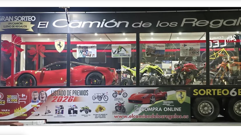 Nieto es el dueño de un camión gigantesco. Quizá el camión más famoso de Extremadura. Numerosos medios de comunicación se han hecho eco desde 2018 de lo que contiene en su interior: un Ferrari 458 Italia, 59.500 euros en oro, dos motos, un quad, viajes, bicis, premios, más premios. Cerca de 300.000 euros en premios. O dicho de otra manera: “El camión de los regalos”.
