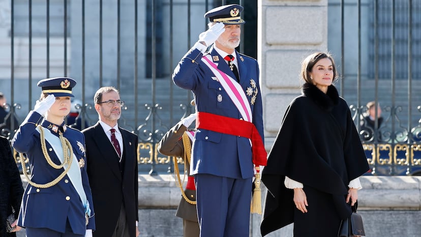 Ataviado con el uniforme azul del Ejército del Aire y del Espacio, al igual que su hija, Felipe VI ha recordado que Leonor de Borbón continúa “con su exigente formación militar” como alférez alumna de la Academia de San Javier (Murcia), donde aprende también a pilotar aviones. Dirigiéndose directamente a la Princesa, le ha dicho que su paso por los centros docentes de los tres ejércitos, que culminará este verano, le “está ayudando a comprender y asumir en toda su plenitud el compromiso y el sentido del deber que son la brújula moral de la vida militar”. Como su padre y él mismo, compartir estos años de formación junto a los futuros oficiales, ha subrayado el Rey, servirá a la heredera de la Corona para conocerlos y sentirse integrada en la vida castrense el día que le corresponda sucederle en la Jefatura del Estado como Mando Supremo de las Fuerzas Armadas.