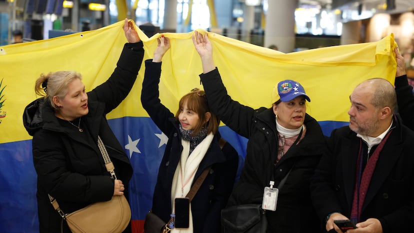 Sujetando dos banderas de Venezuela junto a Contreras estaban Ilse Quijada y Yoli Suárez, conocidos de la familia de San Miguel. “Estamos emocionadísimas. Supimos que la iban a liberar tras la operación de Estados Unidos”, asegura Suárez y continúa: “A Rocío le fracturaron un brazo estando en prisión y no había forma de que le atendiese un médico”. Su compañera Ilse ha narrado las condiciones a las que estaban sometidos los presos en Venezuela: “Muchas veces estaban sin luz y no tenían dónde hacer sus necesidades”.