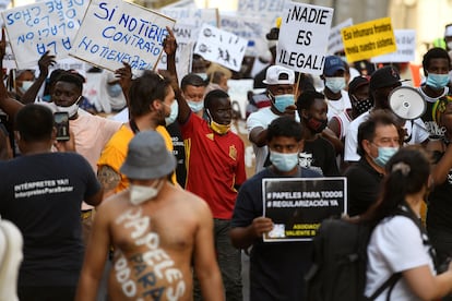 La mayoría no llegan en una patera, sino en un avión. Y no figuran en las listas oficiales. Cientos de miles de los extranjeros que residen en España de forma irregular están condenados a hacerlo en las sombras, limpiando casas, cosechando la fruta que se come Europa y poniendo ladrillos. El Gobierno busca regularizar de manera extraordinaria, con un real decreto que apruebe el Consejo de Ministros, a todos aquellos que puedan acreditar que llevan más de cinco meses en este país desde el momento en el que lo soliciten, que no hayan llegado después del 31 de diciembre de 2025 y que no tengan antecedentes penales. El Ejecutivo calcula que puede beneficiar a medio millón de personas, aunque otros informes elevan esa estimación a unas 840.000. La mayoría procedentes de América Latina: de Colombia, Perú y Honduras.