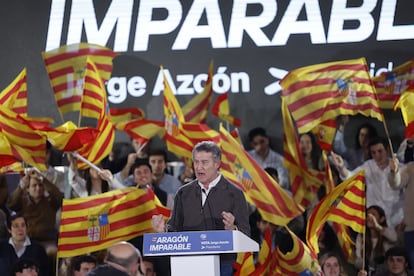 El candidato popular a las elecciones aragonesas de Aragón y actual presidente de la comunidad, Jorge Azcón, ha centrado el principio de su discurso de cierre de campaña en su principal rival en las urnas, la candidata socialista, Pilar Alegría, a quien ha acusado de hacer “la campaña más sucia y mentirosa que se recuerda en la historia”, y ha llamado “miserables” a los socialistas. “Es evidente que una mentirosa no puede gobernar esta comunidad autónoma”, ha llegado a decir. El presidente ha basado esa afirmación en las declaraciones de Francisco Salazar —el exasesor del Gobierno de Pedro Sánchez acusado de acoso sexual—, en las que negaba que Alegría le hubiera afeado su actitud y la ha acusado de haber seguido recurriendo a los servicios de Salazar durante la campaña, pese a que ella lo ha negado.