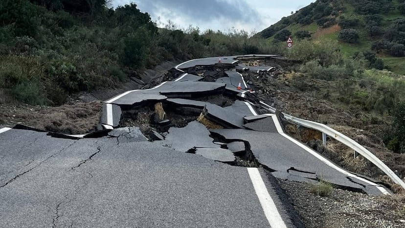 La Diputación de Cádiz y sus 810 kilómetros de carreteras es la que, principalmente, articula los pueblos de esta zona de Cádiz. Ahora es la principal administración afectada por los daños e interpelada por ellos. Ya tienen identificadas 15 vías dañadas, en lo que han llamado una fase cero en la que intentan con medios propios y externos recuperar la circulación en las zonas menos afectadas. Y han invertido 1,45 millones de euros en esos primeros trabajos. Bello espera que la mayoría de las carreteras se puedan reabrir en el lapso de un año, pero otras costará más. Las imágenes que han ido publicando los ayuntamientos afectados da buena cuenta de ello: la carretera que une Algodonales con Coripe (Sevilla) rota en decenas de pedazos; otra carretera con un socavón en el que cabe una persona y la A-374, la autonómica que une a la Sierra con Ronda, con un enorme socavón en el que aparece perdido al completo uno de los sentidos de la vía.