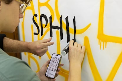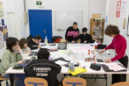 El espacio sopla velas cargado de salud. “Ha habido momentos mejores y peores, pero estamos en un momento magnífico”, celebra el director, Julián Macías, ocho años en el cargo, 30 como profesor de fotografía. El claustro cuenta con casi un centenar de profesores que dan clases a más de 700 alumnos y alumnas a partir de los 16 años. Además de bachillerato artístico, aquí se imparten enseñanzas profesionales de artes plásticas, diseño e imagen. Grados y ciclos formativos donde jóvenes —y no tan jóvenes— se forman en un amplio universo de disciplinas: alfarería, cerámica, talla en madera, escaparatismo, diseño —gráfico, de interiores o de moda—, patronaje, fotografía o dorado, plateado y policromía, entre otras. Sus instalaciones reflejan una energía especial que motivan a cualquiera a aprender. También son singulares los aromas que desprenden cada clase: del barro a la madera, de la tela a los químicos de los laboratorios fotográficos o los aglutinantes con los que, a finales de marzo, un grupo trabajaba la caligrafía romana junto al profesor Pepe Bautista. “La escuela ha sabido leer siempre su tiempo para formar profesionales que estén adaptados a las necesidades de cada momento”, señala Macías.