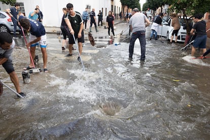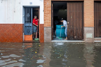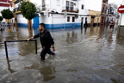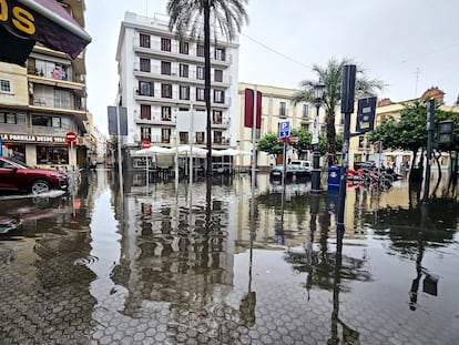 Las lluvias torrenciales y las fuertes rachas de viento que han caído a lo largo de la mañana de este miércoles en las provincias de Huelva y Sevilla han provocado incidentes acompañados de imágenes que, a muchos, les ha hecho recordar la tragedia de la dana de la que justo este miércoles se cumple un año. Afortunadamente, la borrasca apenas ha causado daños físicos, un herido grave en la localidad onubense de Gibraleón, pero las intensas precipitaciones han generado alrededor de un millar de incidencias, más de la mitad solo en la capital de Andalucía, donde parte de sus barrios y avenidas principales seguían anegadas y con coches varados a lo largo de la tarde. Y conforme amainaba el temporal, arreciaban las críticas, tanto contra la Junta de Andalucía como, y sobre todo, contra el Ayuntamiento hispalense por la falta de previsión y coordinación ante una situación que, al menos en la provincia de Sevilla, se conocía de antemano que iba a ser complicada porque la Aemet había activado a lo largo de la semana el aviso naranja.