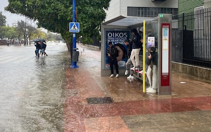 El desconcierto se extendía a todos los barrios: coches arrastrados por el agua en la barriada del Cerro del Águila y balsas de agua en La Caruja, de donde ha sido muy complicado salir a sus trabajadores a medido día, porque el servicio de autobuses no funcionaba con regularidad. “Ni han suspendido las clases, ni han recomendado el teletrabajo, y eso que justo hoy se cumple un año de la dana”, se lamentaba Laura González, incapaz de cruzar la avenida Reyes Católicos, literalmente una piscina, para coger su coche de un garaje cercano, “que, seguramente, también esté inundado”, vaticinaba.