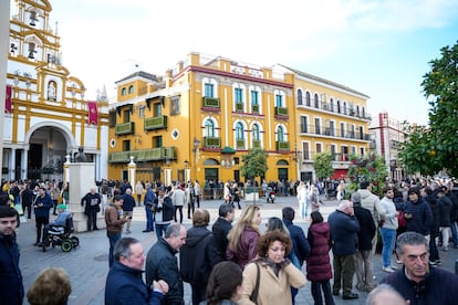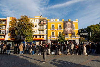 Raúl y María Luisa llevan desde las ocho en la cola. Amainan la destemplanza de una mañana inusualmente fría en Sevilla con un chocolate y churros. Vienen desde Camas, a 20 minutos en coche. Han podido ver ya por redes las imágenes de la talla restaurada. “Está fantástica”, coinciden. A su lado, Antonio no quiere saber nada. “No quiero desilusionarme. La última vez se me partió el alma”, dice sobre la intervención de junio. La Hermandad, que acaba de votar nueva Junta de Gobierno, no quiere volver a defraudar a sus fieles. Parece que esta vez lo ha logrado.