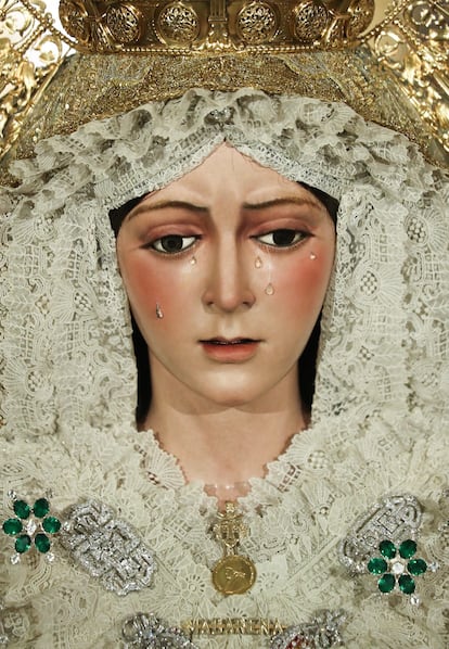 Esa buena impresión la comparten también los expertos. “La virgen ha recuperado todo su esplendor en todos los aspectos. La limpieza ha permitido disfrutar de su policromía barroca y se ha recuperado la volumetría de los ojos”, recalca Jesús Romanov, historiador del arte y devoto, que llevaba desde las cinco de la mañana haciendo cola. “Las imágenes, cuando están muy oscuras, endurecen su mirada y su expresión y cuando las imágenes se limpian, se dulcifican. La Macarena ahora ha recuperado su dulzura y su dramatismo”, abunda.