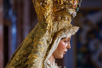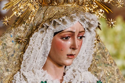 “Es de nuevo ella”, explica José. Son poco más de las 10 de la mañana y acaba de salir de la basílica donde llevaba haciendo cola desde las 5.45 de la mañana. Es vive en el barrio, pero Mari Carmen ha venido desde El Aljarafe sevillano para ver el resultado de la restauración. “Venía conduciendo con miedo, pensando si se habría podido recuperar la expresión original, si íbamos a tener su mirada de siempre... Y sí, es la misma”, cuenta emocionada.