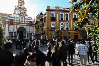 Raúl y María Luisa llevan desde las ocho en la cola. Amainan la destemplanza de una mañana inusualmente fría en Sevilla con un chocolate y churros. Vienen desde Camas, a 20 minutos en coche. Han podido ver ya por redes las imágenes de la talla restaurada. “Está fantástica”, coinciden. A su lado, Antonio no quiere saber nada. “No quiero desilusionarme. La última vez se me partió el alma”, dice sobre la intervención de junio. La Hermandad, que acaba de votar nueva Junta de Gobierno, no quiere volver a defraudar a sus fieles. Parece que esta vez lo ha logrado.