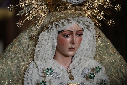 Esa buena impresión la comparten también los expertos. “La virgen ha recuperado todo su esplendor en todos los aspectos. La limpieza ha permitido disfrutar de su policromía barroca y se ha recuperado la volumetría de los ojos”, recalca Jesús Romanov, historiador del arte y devoto, que llevaba desde las cinco de la mañana haciendo cola. “Las imágenes, cuando están muy oscuras, endurecen su mirada y su expresión y cuando las imágenes se limpian, se dulcifican. La Macarena ahora ha recuperado su dulzura y su dramatismo”, abunda.