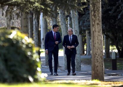 Ambos Gobiernos se han volcado en la atención a la emergencia de la Covid-19, conscientes de que aún vienen días difíciles. La mesa de diálogo no es un asunto de primer orden en este momento, aunque sí importante. Nadie duda de la necesidad de transmitir el mensaje de que se le dará continuidad tras el primer encuentro, celebrado el pasado 26 de febrero. De ahí que en La Moncloa no vean con malos ojos la propuesta de que se celebre la reunión a través de videoconferencia.