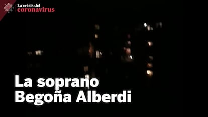 La soprano Begoña Alberdi se encontraba, el pasado sábado, confinada en su piso de la calle Calàbria -en el Eixample de Barcelona- donde se encuentra, junto con su pareja, sobrellevando el encierro obligado decretado ante la pandemia del coronavirus. “Por la noche, los vecinos empezaron a aplaudir desde los balcones en reconocimiento a los sanitarios. Albert, mi marido, me dijo: ‘Canta algo’”, sonríe la soprano. Sacó la cabeza por la venta del interior del patio e interpretó El Vallespir, de la zarzuela en catalán Cançó d’Amor i Guerra. Los vecinos quedaron sorprendidos pero el repertorio de Alberdi acababa de empezar. Desde el sábado ha interpretado el Ave Maria de Gounod, O mio babbino caro de la ópera Gianni Schicchi y este lunes es el turno de Casta Diva, de la ópera Norma de Bellini. “He actuado 273 veces en el Liceu y ahora parece que me voy a hacer famosa por cantar desde la ventana de mi casa”, ironiza, con mucho sentido del humor, la soprano.