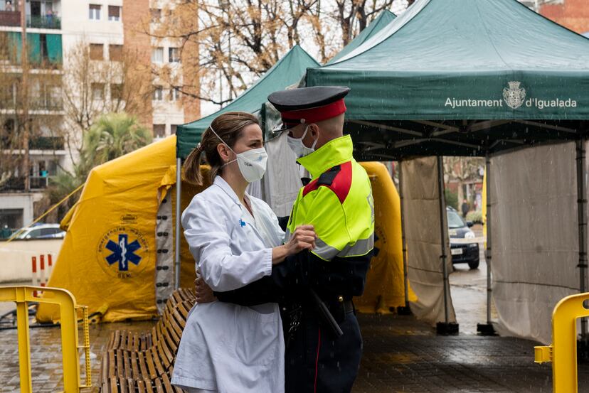 En el hospital, epicentro del foco, la situación es “límite”, según ha revelado su alcalde, Marc Castells, en más de una ocasión. Hay 140 sanitarios que han dado positivo por coronavirus o están confinados preventivamente po haberr estado en contacto con algún enfermo de Covid-19. “Estos datos han comprometido al hospital de Igualada”, ha admitido Vergés. Algunos pacientes ya se derivan a las 180 camas que ha habilitado el Hospital General de Cataluña para esponjar este centro de Igualada. La presión asistencial que viven el Hospital de Igualada y toda la Conca de Òdena desde el inicio del brote ha obligado al Departamento de Salud a incorporar a 152 profesionales sanitarios, 32 de ellos con contratos directos para reforzar el complejo sanitario, el centro de salud de Igualada y la red asistencial de toda la zona perimetrada.