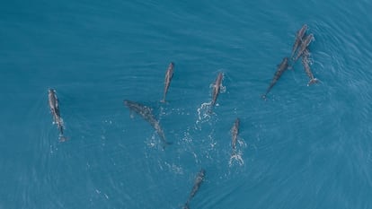 El pasado jueves día 21, Corona y otros tres biólogos miembros de la Asociación Noa18nusos -constituida oficialmente en 2018 pero activa desde 2009-, dedicada a la divulgación del medio marino y en especial de los cetáceos en la Costa Brava, salieron del puerto de Palamós en un velero. Sobre las nueve de la mañana, en el Rec de Begur, una zona de gran profundidad delante de las costas de Begur, Palafrugell y Palamós detectaron a estos animales a unas cinco millas de la costa. “Era un grupo bastante disperso con unos 50 individuos, pero entre las 5 y 11 millas fuimos encontrando grupos dispersos, en total había más de un centenar”, asegura Corona.